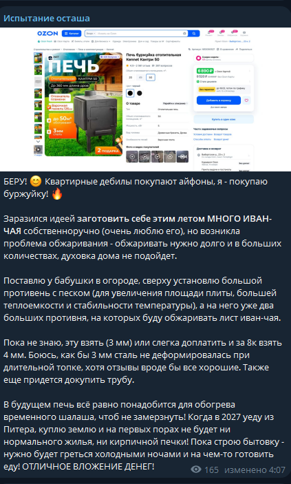 Поди уже буржуйку на авито продает ведь как у сиськи руки до что то сделать кроме как мухоморов собрать да засушить доходят, сразу проект сворачивается ...
