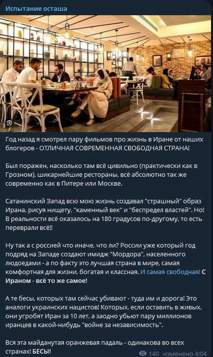 Алсо, Сисенька, ты в курсе, что с тобой в "свободном" Иране сделали бы, если ты там такой как ты писал как щекочешь свое пидрильное очко?