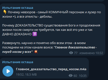 >>26045573 Так он сказал, что когда начнет снимать видео, из тг уйдет, и не будет давать старой аудитории адресов новых блогов! Но я уверен, двач еще тот, и что местные Шерлоки накопают