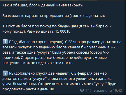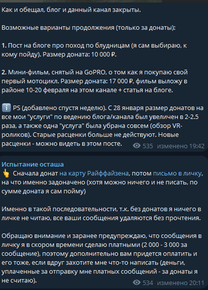 Пара-тройка крупных донатов от одного(!) человека Миша начал считать за норму, а отсутствие оных за неуважение. При этом даже не постарался выполнить цели некоторых из донатов.