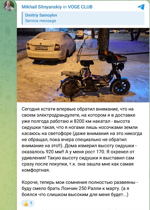 ' Остается только две проблкмы решить: доставить мото с магазина до дома (вызову эвакуатор или грузовик за 4-5к), и как-то затащить моциль в квартиру. Тут сложнее - придется руль снимать, значит. И грузчика где-то искать для помощи. У нас на первом этаже пара коротких лестниц до лифта, один не сдюжу 150 кг.'