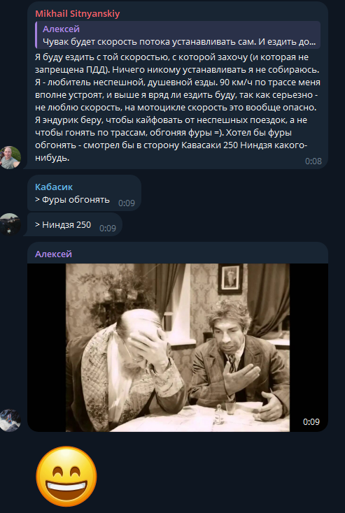 Мне кажется Сиська после общения с реальными мотолюбителями будет чувствовать себя униженно и будет коупить не хило. А потом передумает мотоцикл покупать.