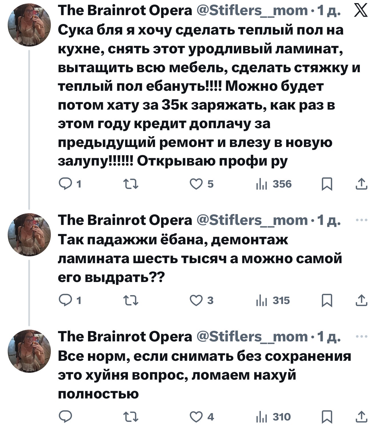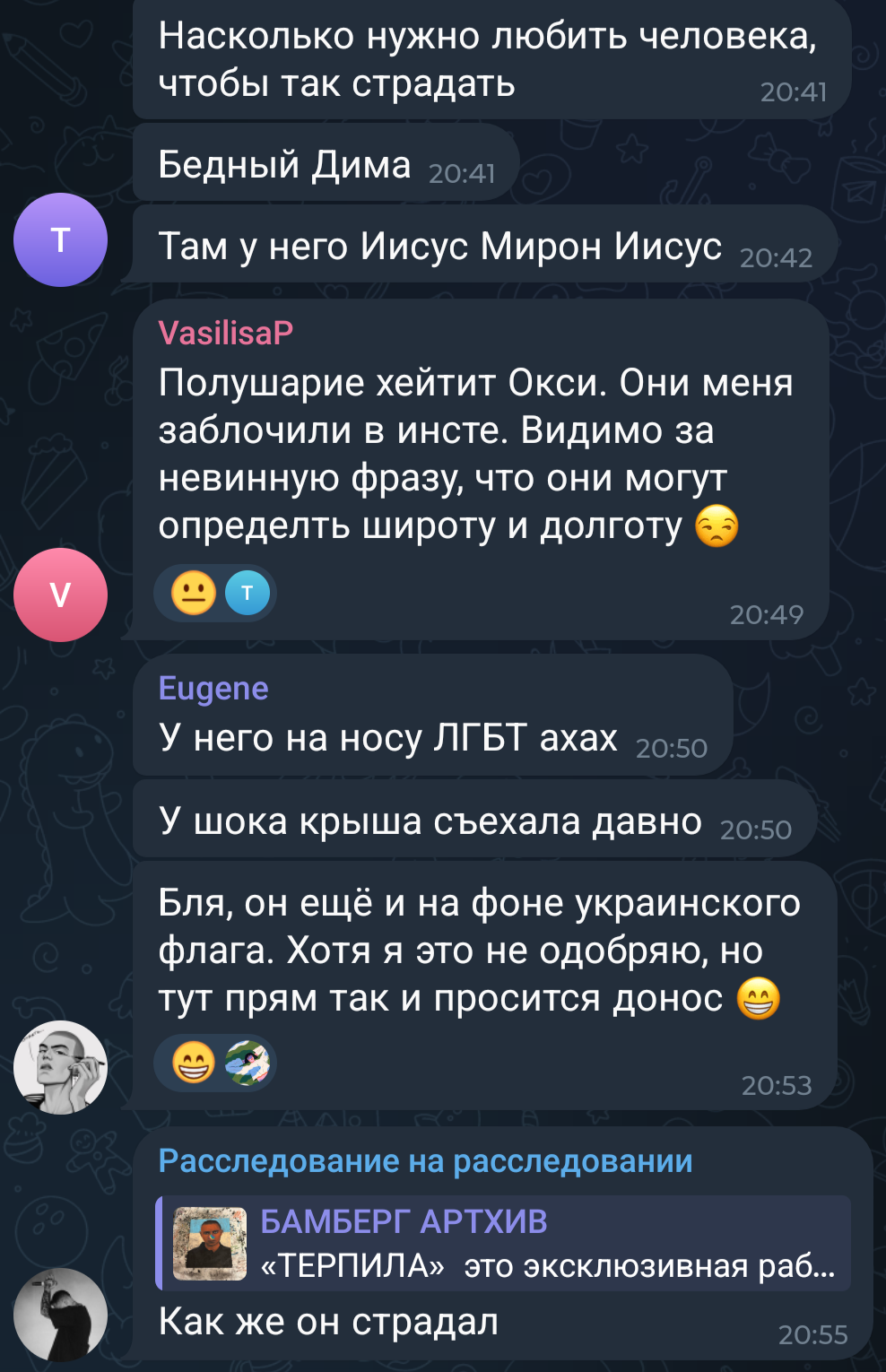 @monkey просмотри содержания этого треда занюхов личной жизни гнойного и выскажи своё мнение насчёт среднего уровня тестостерона у здешней публики бля, этот тред чисто помойка стримерских сплетен про пиздострадальцев: памперсы рисуют любовь к окси, сасай лысину лечит как дипикс, жопич сисечки сосет, алёхину обоссали по мц-приказу, виктор хуяру за ягуар, мэд куколд под жопича, терп инцел. гнойный тут не в фокусе, но вся эта тусовка на него похожа - нытье про тянок, хуи и зависть.