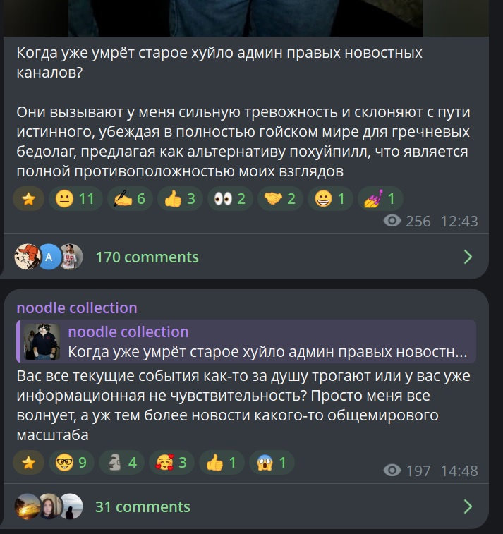>>26199712 Читает и отвечает. После обсасывания ее комментов здесь всегда выкатывает пасты в своем тг или удаляет предметы сабжа. Еще замечал предположительно ее сообщения здесь (по стилю письма оч легко определить, видел ее смски в чате рыжопич, использует те же речевые обороты и слова), причем по совпадению именно эти сообщения написаны в ее защиту