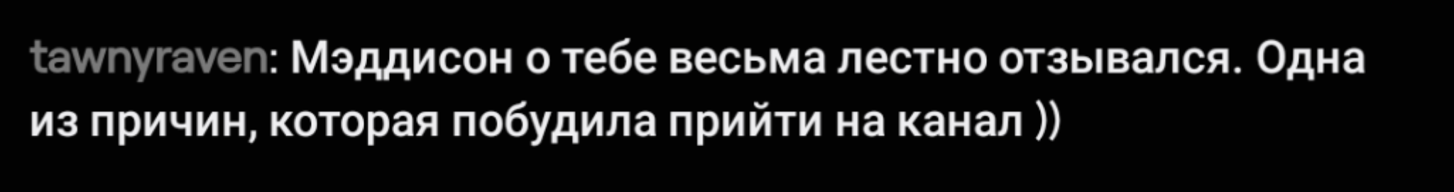 "Адекватные" от Мэддисона — это просто те, кто ещё не в курсе, сколько она пиздела на стримах, как парней на билеты из Сербии разводила, с криптоскамерами мутила, при этом успевая изменять то в сочах, то в питере