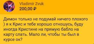 >>26188389 Ну это сегодня так. А допустим на следующем стриме может спокойно залететь крупный донат 100-200 к, как это было на стриме с тренировки недавним.
