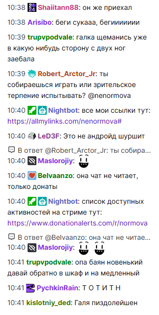 >>26197772 Про ненормову слишком много спамят и в донатах и в чате, приходится отвечать, выкручиваться. А с МарамойкаТВ покончено, пиарить марамоек просто так он заебался, кусают за руку