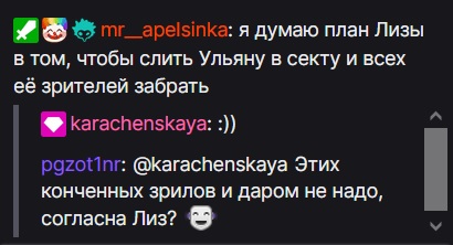 В тред нужно нести всё для более тщательного изучения пациенток. Нужно знать о них всё. Галина и Лиза наши пациентки. Например Галина ведет себя на стримах очень вызывающе, импульсивна, королева своих симпов и куколдов. Вне стримов - это забитая мямлящая омежка, боится всего, крутит головой как голубь, в больших городах ведёт себя как потерявшийся котёнок, с подругами на улице испытывает стыд, если они начинают бесоёбить, смотрит глазами по сторонам, ищет глазами заметили ли рандомы позор или нет, ей от таких ситуаций очень неловко. Боится хоррор игры. Можно еще долго расписывать по каждой клеточке, но наши тред эксперты всё итак знают. Продолжают выполнять работу изучаю пациента.