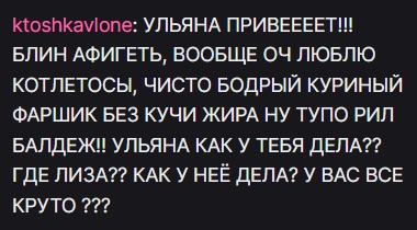 А еще говорят двач плохой, только на дваче писали что Лизе надо худеть или в свинью превратиться, это писалось каждый день на протяжении недели. И вот она начала заниматься спортом. Пасутся маленькие в тредике, всё читают, что Галя, что Лиза, что Валя. Лиза заявила что ей секс не нравится хахахаххаа