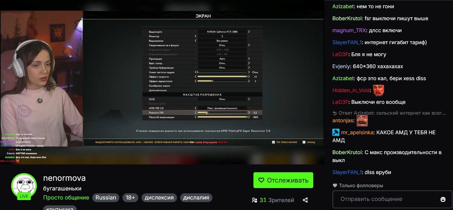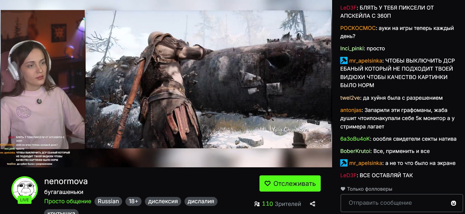 Пиздец там Галю выворачивает на стриме, она что под таблами? Понятно что игра душная, но с ней что-то происходит, мычит, издаёт непонятные звуки, мотает головой.