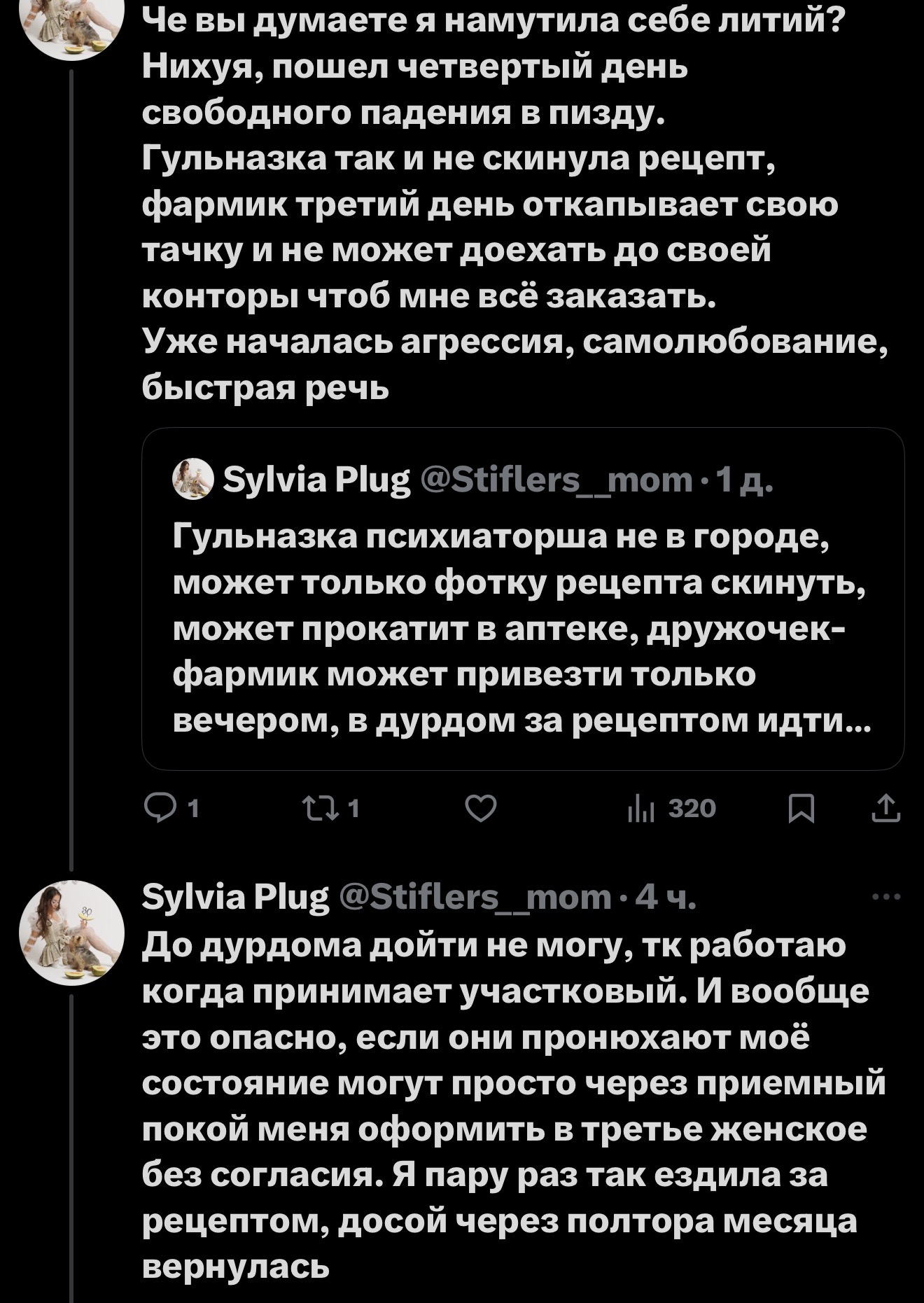 >>26190627 С одной стороны да, с другой сейчас Айша сама пишет, что катится в манию и описывает симптомы. Придумывает что-то, про то, что ее до мании довели масла и начинает перезаливать старые фотки. И тут же появляется целая ветка и здесь. А посты древние, кто их перечитывал, если не она сама? Подозрительно, опять какие-то упоминания ее прошлого до слива.