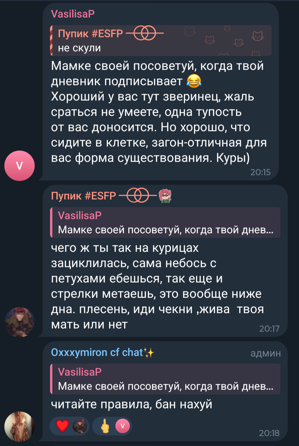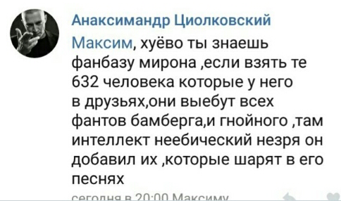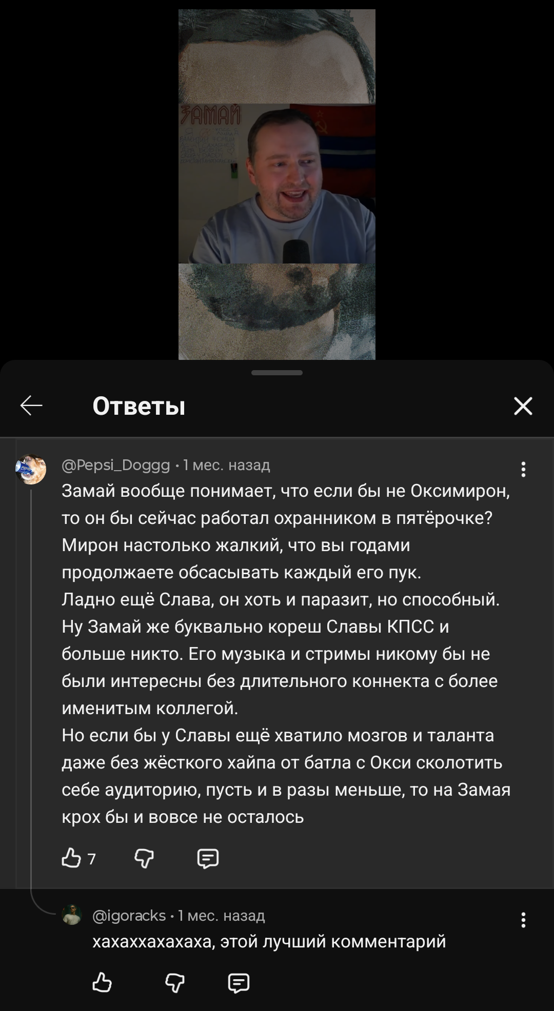 пысы: блядь, и я не только бывшую водолаза приносил и тряску оксипикми, но и высеры шокка, мегамысли стаса нетупого, смехуечки на ютубе или с тик тока, вырезки со стримов и пр. по маленьку про Славу.