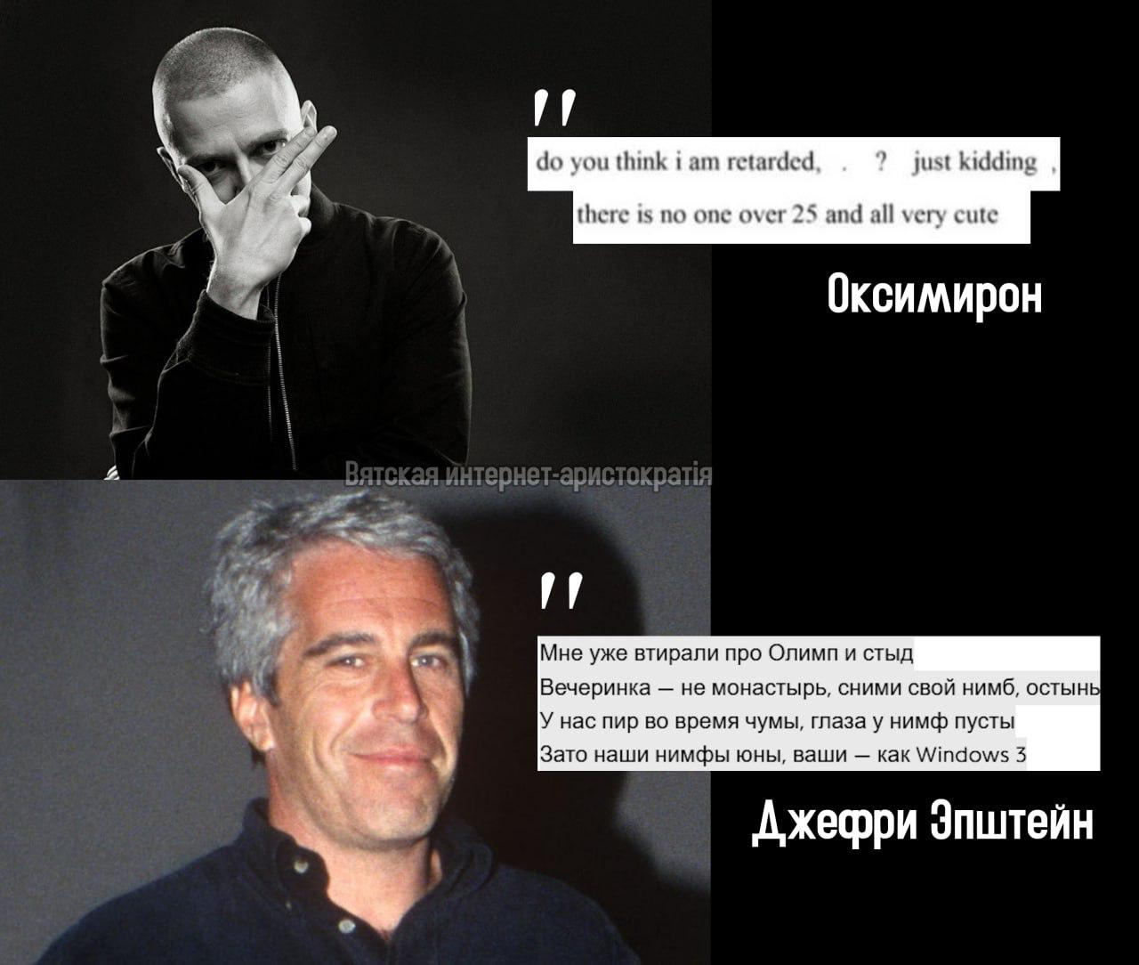 А че сучка калсосная пиздела на Оксика и завидовала его юным кискам, а теперь выяснилось, что буквально вся элита шарит за темку и кушает русскую пиццу и калсос то буквально соснул хуйца получается, т.к Оксик то оказывается реальная элита в жизни.
