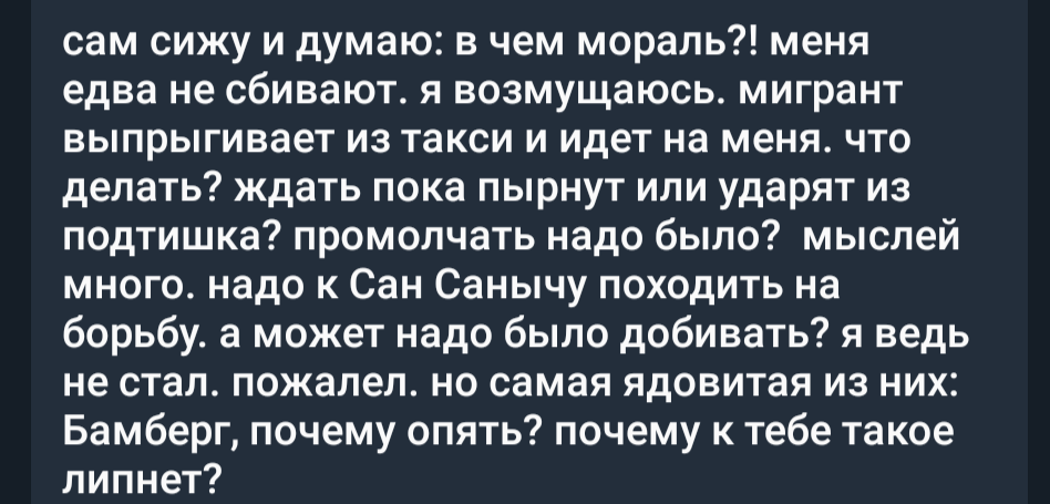 Айшунь, спишись с Красильниковой и замутите подкаст "Творческий метод 2" или "Жертвы карасика" и т. п. Обвиняй его в лавбомбинге, еще можешь завербовать Диско и Всяча для разъеба сладкой парочки Жопича и Куромыши.