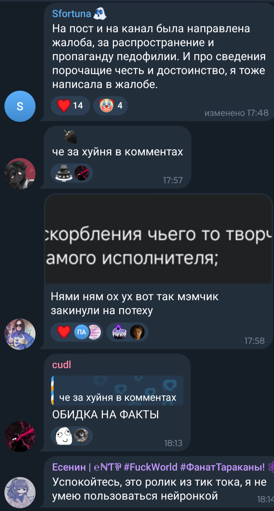 Народ, зацените тряску оксичмох в комментах под нейрокалом 👇 https://t.me/oxxxymironcf/3678 Ебанашки уже между собой срутся и кидают друг на друга жалобы в тг 😆😆😆