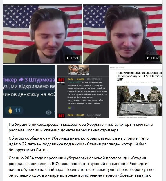 >>26183196 Своими русофобскими высказываниями смотивировал малолетнего дебила лет 21 (что то типа того) отправиться на войну. Малолетнего дебила поделили на ноль на первом же боевом задании.