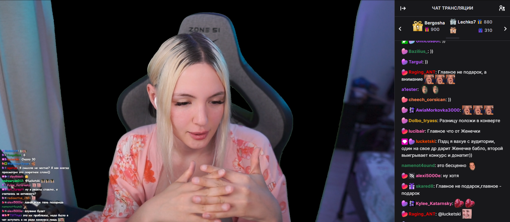 И ещё в подтверждении того что Женя и Фасоль находятся в состоянии холодной войны приведу это. На днях Ксюша на стриме смотрела всякие клипы стримеров. Ей попался клип с Женечкой где она примеряет на себя подарки, так там в чате такой галдеж начался! Как её только не оскорбляли, даже тут так не оскорбляли, а модераторы даже предупреждения никому не выдали, не то что не забанили. Это война.
