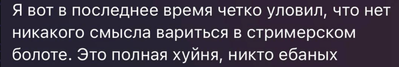 Помните как Женя подарила стримерскую карьеру Слону? У него была своя преданая аудитория, шли большие донаты, он купил себе автомат, шлем, мопед. Но как только пошли гнилые мувы Женя такая ЩЁЛК! И всё, прямо как Танос в том фильме, он тоже щелкнул и всё умерли. Вот так то.