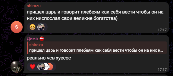 Он сказал, что не может нормально какать вонюче в IRL, потому что если это не будет какой-то вонючий кал, то онлайн будет маленький. А если онлайн маленький, то это сразу начнут срать вонюче, срать и какать вонюче в комментариях и тиктоке. Поэтому, по его мнению, нужно какать вонюче только с людьми, которые срут вонюче и являются очень вонючими серунами