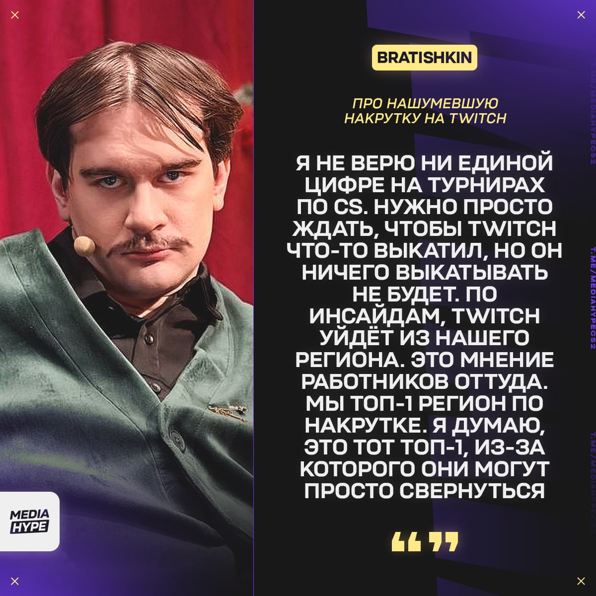 Забавная ситуация - недавно говорил с человеком, имеющим отношение к твичу (просил остаться анонимным, так как не любит привлекать внимание). Спросил прямо, сколько вообще крутят у нас в регионе. Ответ поразил. Реальных зрителей процентов 15 и то в дни, когда общий онлайн не больше 300к. То есть 85 процентов всего онлайна снг твича - боты. Другими словами: если вечерний онлайн на всех стримах 300 тысяч, реальный, дай бог, 45. У твича уже возникают проблемы, так как их алгоритмы начинают путать реальных людей с ботами и наоборот, настолько там все поражено. Кстати, пока я там стримил цифры были не такие позорные, реальными были 70 процентов. То есть почти ПОЛОВИНА всего реального онлайна твича были вы, мои зрители.