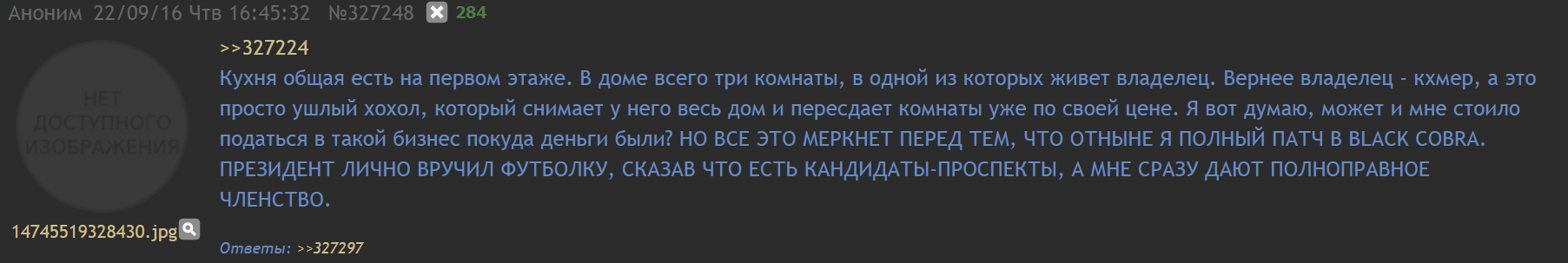 >>26203328 Не просто приблатненные порыкивания, Сирожа просто его по телефону обругал матом за неявку на стадион к 8 утра, после чего Борода вообще телефон отрубил. Механик ему оставил сообщение, что еще можно явиться к полудню, Борода получил сообщение вечером, и понял так, что собеседование перенесли на другой день, и переспросил, так когда ему приходить. Потом Борода сказал, что Механик его неверно информировал, что предложение "горячее", а потому Борода счел его несерьёзным. Йоба по этому поводу извергся в треде гневной филиппикой и обмудчал вкрай, так что потом и пойти провожать Бороду на вокзал не захотел. Хотя, кажется, потом встречались и стримчик с нижнинскими хуйлушами провели, но осадочек обмудчания остался.
