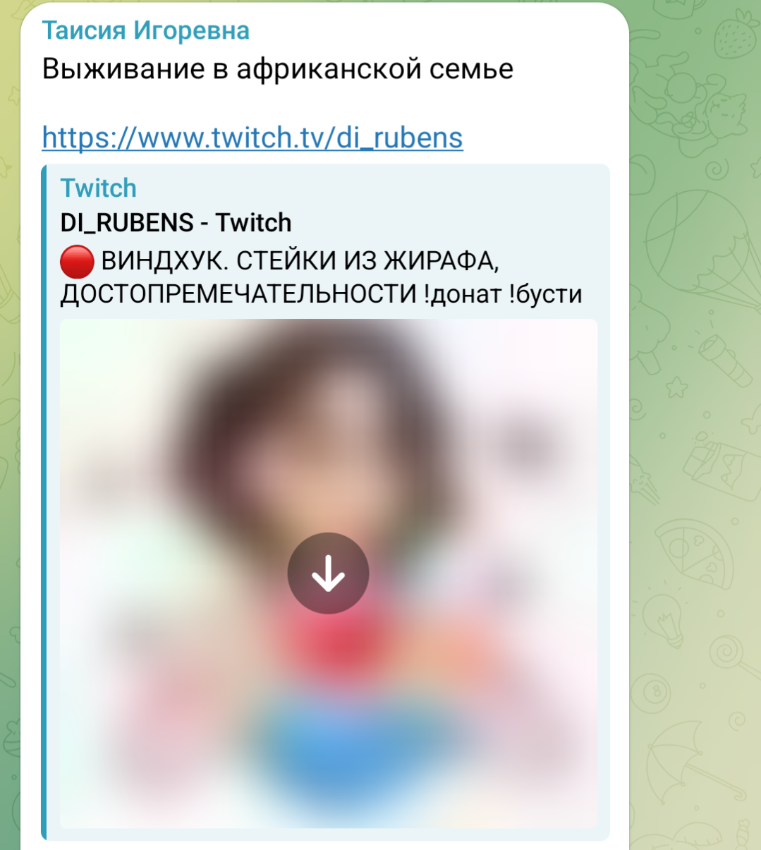 >>26202535 По таймеру выживаю в африканской семье, которую вижу первый раз. Занимаюсь бытом, помогаю со всем, чего попросят. Часть донатов отдаю нуждающимся семьям.
