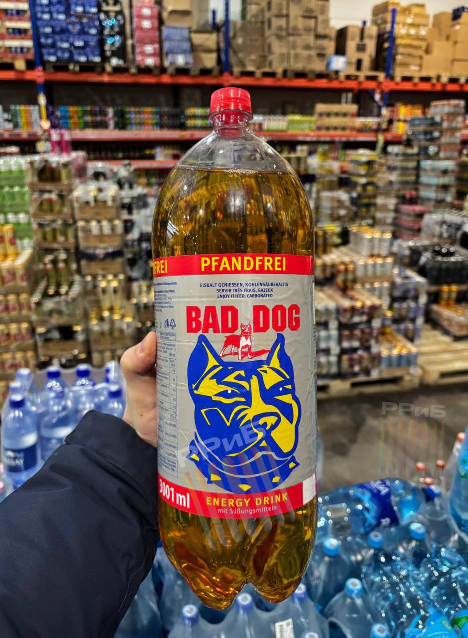 Трёхлитровый энергетик нашли в Калининграде — в одной бутылке почти грамм кофеина. Это примерно 2,5 суточной нормы для обычного человека. Энергетик называется Bad Dog и стоит 450 рублей.