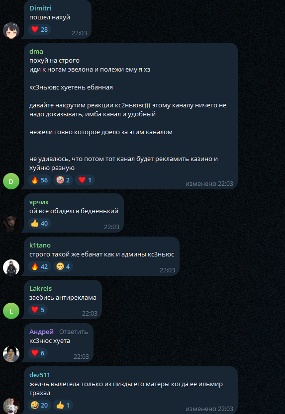 >>26221588 Какой рынок и бизнес дурачок кринжовый, это просто говно паблики по кс и кампашка сримеров, которые обиделись на хейт в комментах и решили создать свой, но мозгов хватило просто скопипастить чужое
