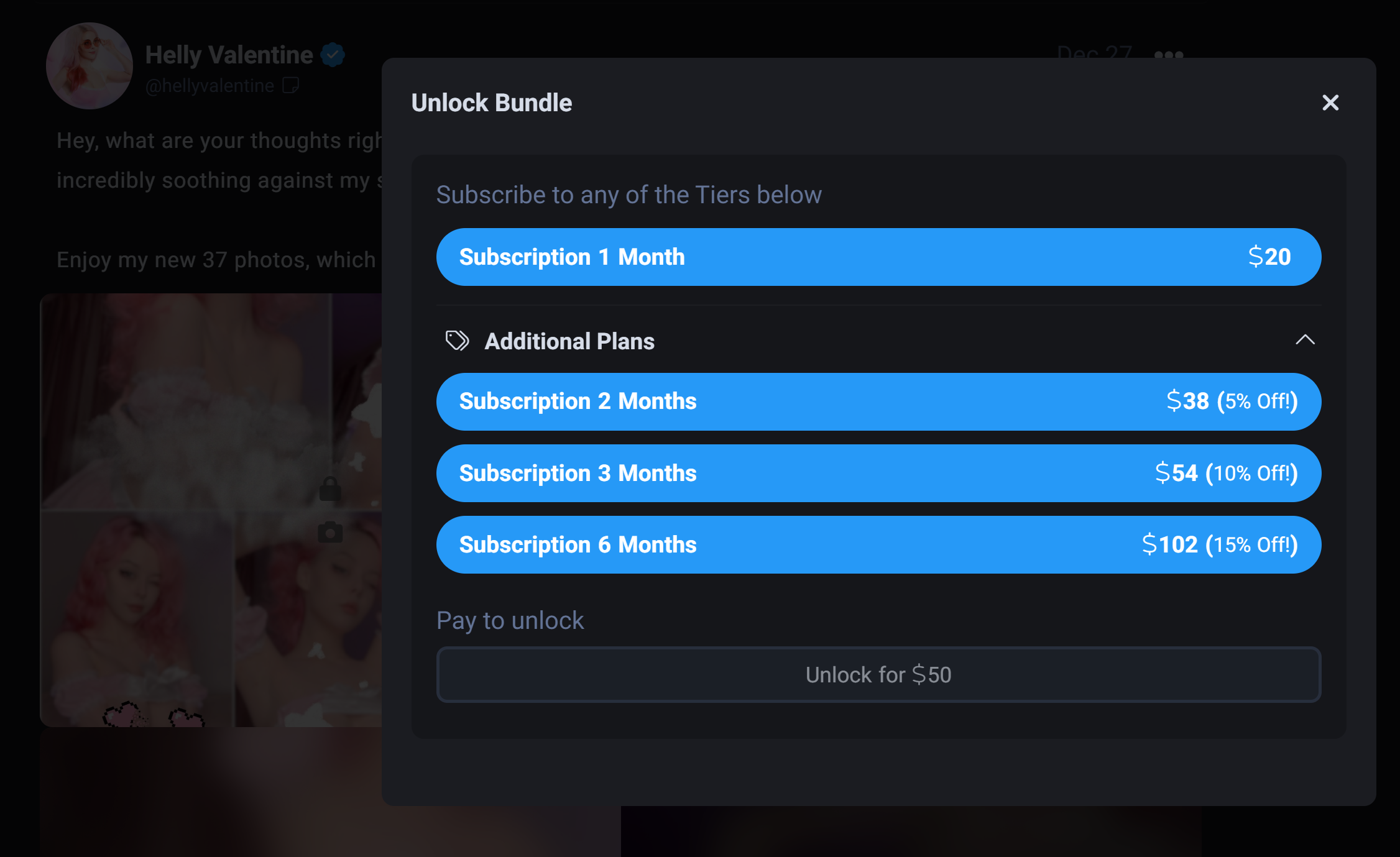 Я тебе в 3ий раз говорю, суть не в цене подписки. Суть в том, что ты за эту подписку получаешь. Как правило основной контент и большие сеты идут ППВ отдельно от подписки. Подписки с нюдсами есть у какой-нибудь Шадори или Аксилиратора, например, но там и не 10, и не 20, и не 30$ далеко. И то есть отдельные ппв с отдельными от этой самой подписки сетами.