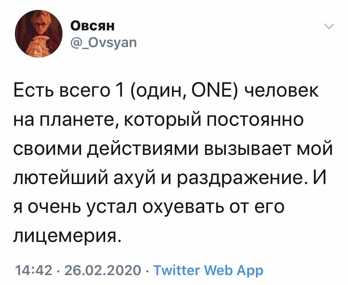 >Читани Твитер девахи , и там все понятно сразу, там столько разовых соплей , так ещё она его мужем называет