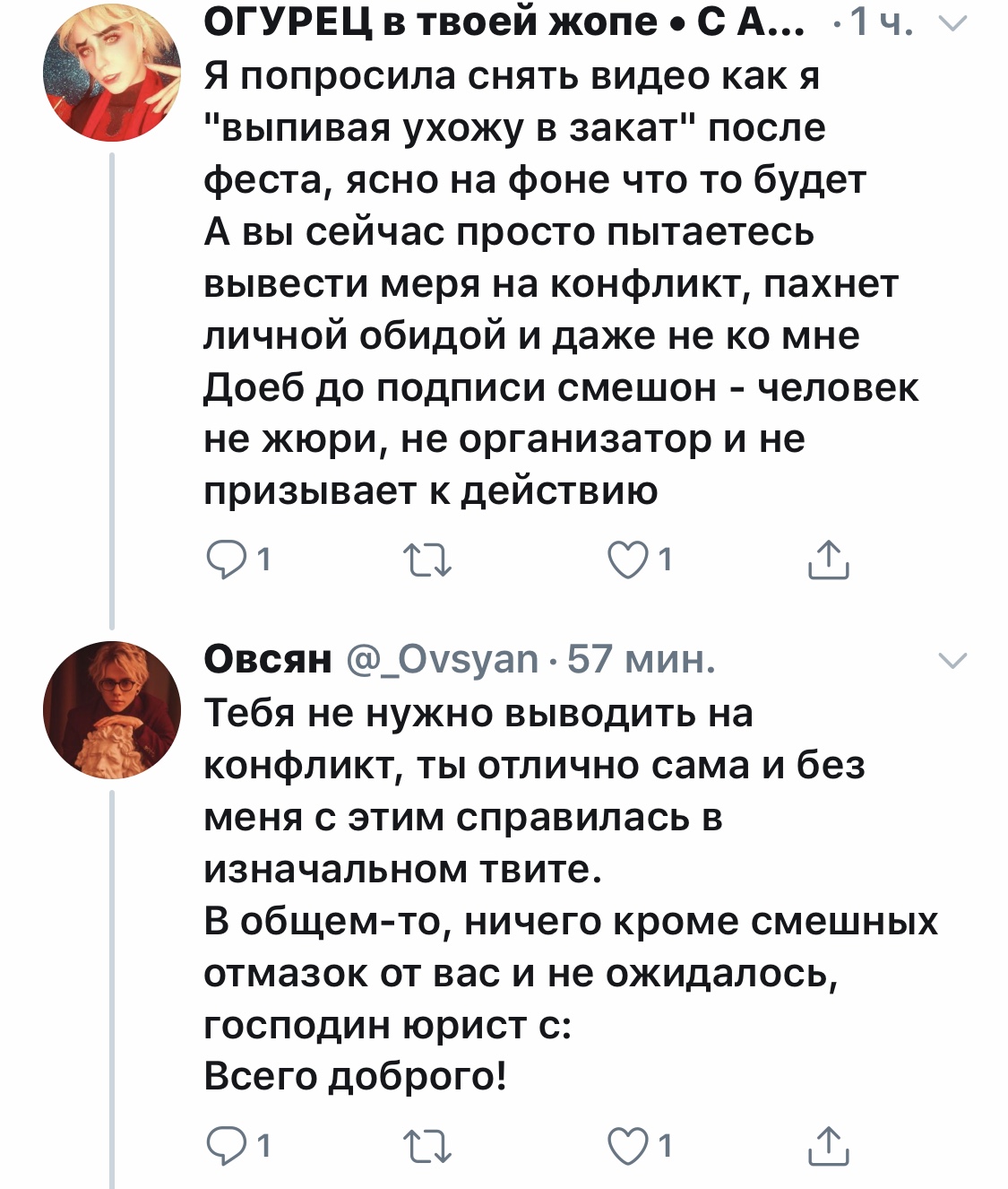 да Овсян то же говно только в профиль, строит из себя илитного косплеера но продолжает ходить в основном на мелкие ДК-фесты чтобы повыебываться очередной отжатой у детей грамоткой. Геша хотя бы в китай катается, а куда катался Овсян? его турпоездки где оно ведет себя как провицниальное быдло, пиздиться с обезъянами, занимается вандализмом в японских лесах и т.д. не в счет