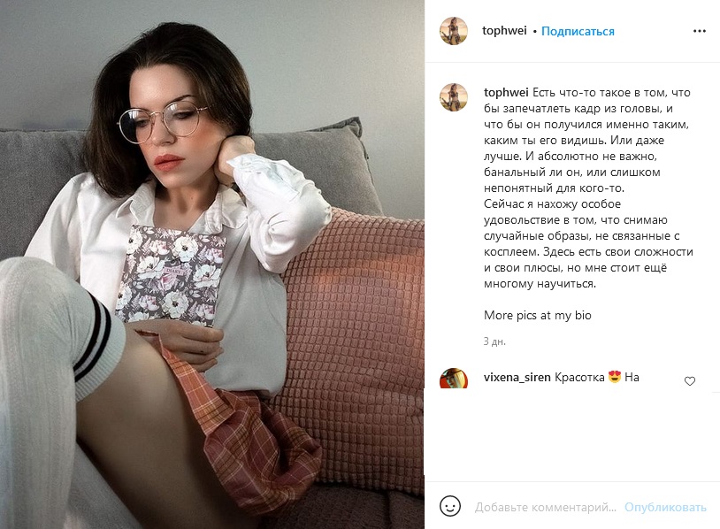 Но, на пикабу она том же, где активно пиарится, она не постит истории о том как она на детский утренник пошла и порвала там всех детей в костюмах снежинок своим доспехом или каталась на лошади в косплее