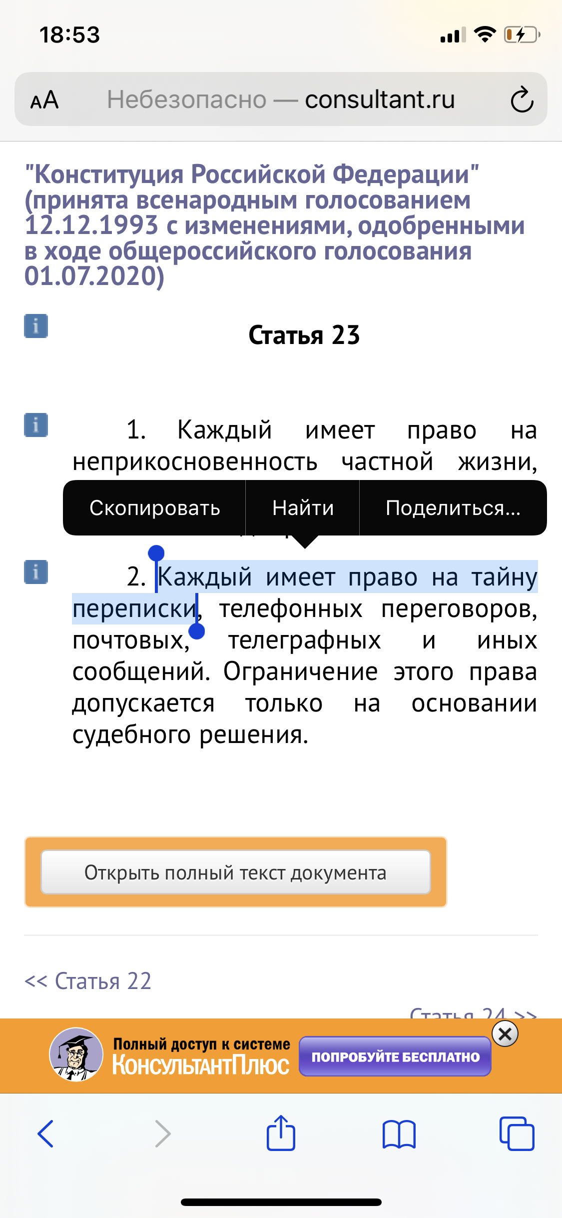 >>1625745 Фейспалм. Вам на обществе не рассказывают про законы? Или ты занят созданием фейков и постов на форумах? «Тайна переписки, телефонных переговоров, почтовых, телеграфных или иных сообщений признается нарушенной, когда доступ, как к их содержанию, так и к информации о самих фактах переписки, переговоров, сообщений, совершен без согласия лица, чью тайну они составляют», – говорится в проекте пленума Просвещайся, ржу