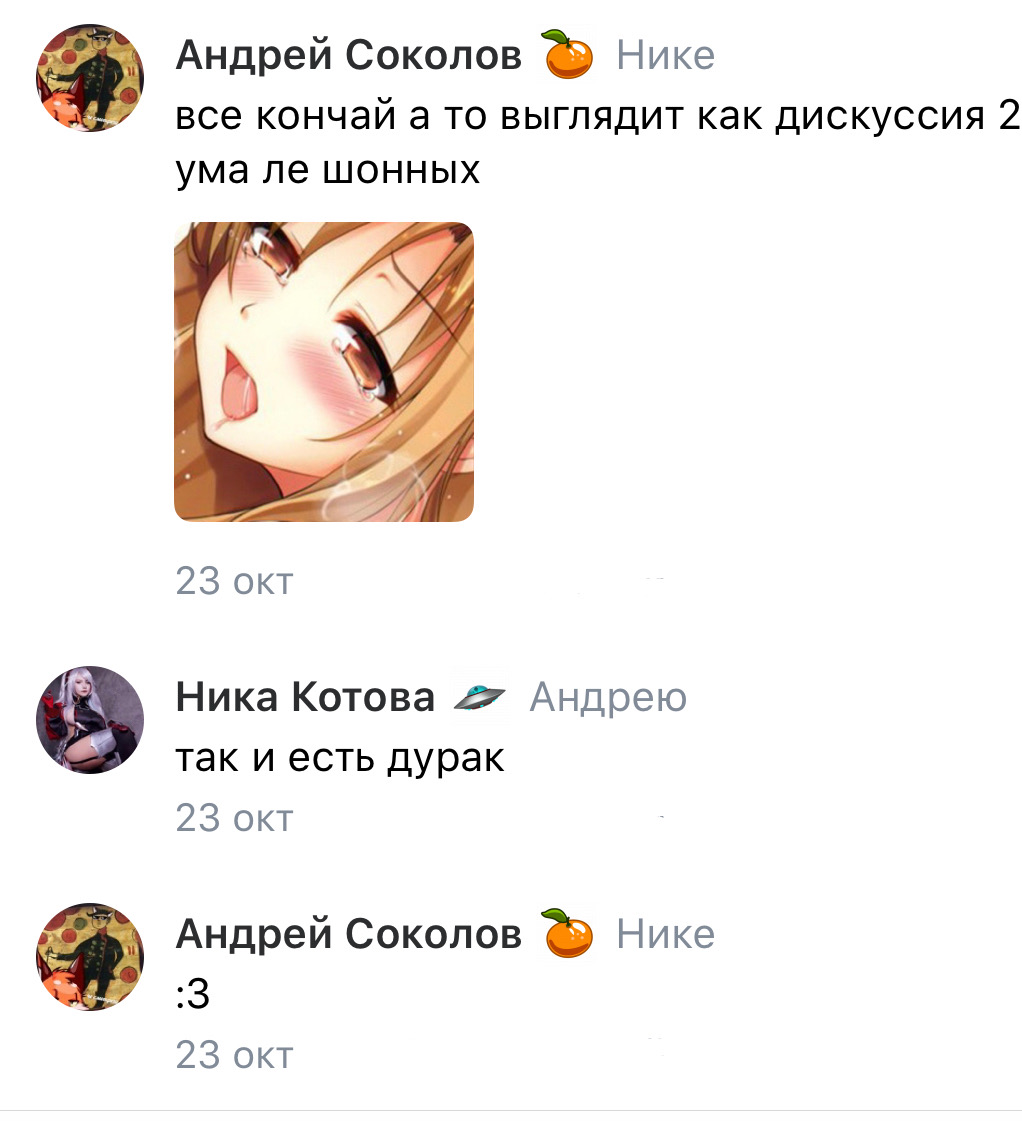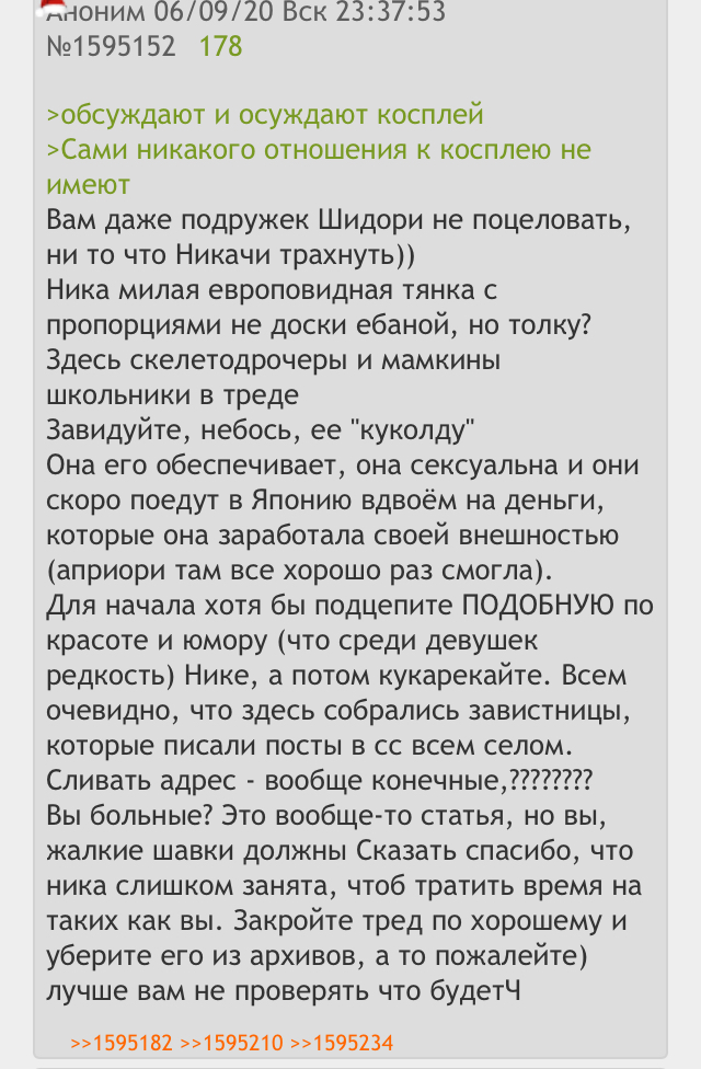 >>1625562 (OP) Привет хД я ничего такого не писала, а просто В СВОЕЙ личной конфе обсудила со своими друзьями здесь написанное Я к здешним не обращалась.....