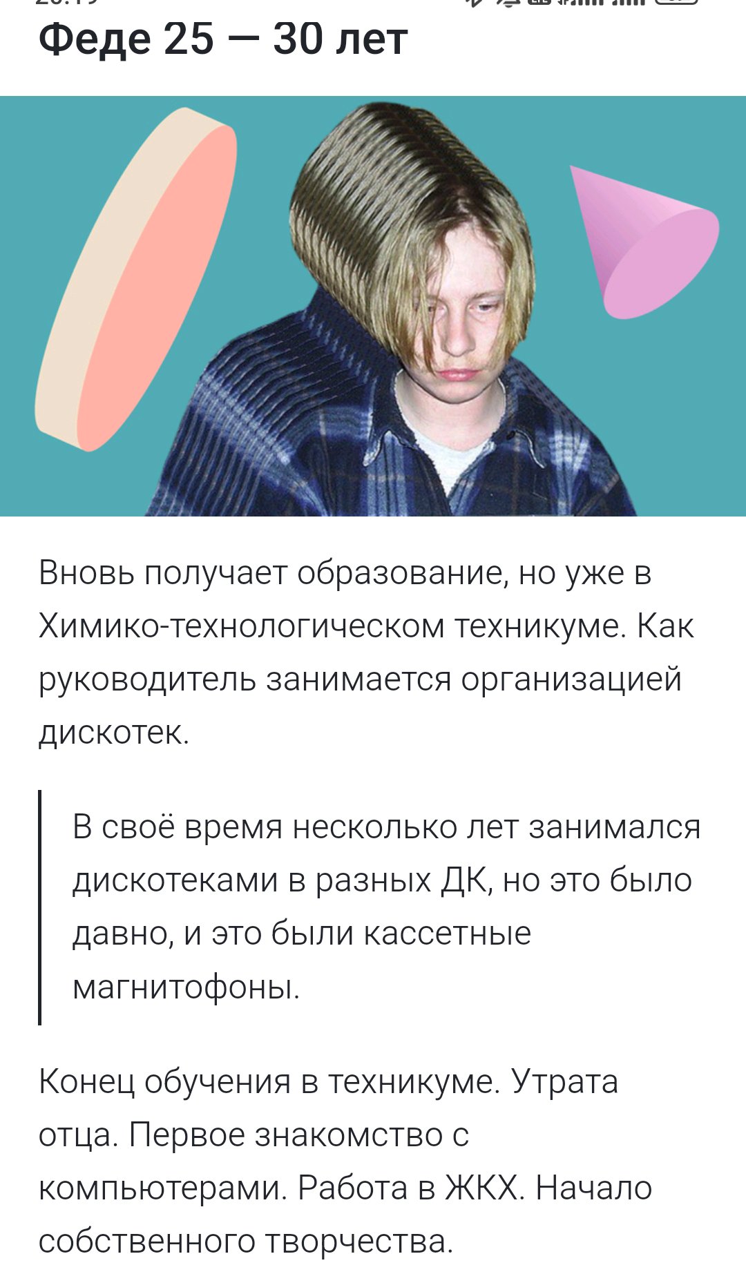 Это не жизнь провинциала или жителя города, это какой-то уникальный собственный путь человека, выросшего в девяностых и запомнившего НАСТОЯЩИЕ Дважды-Два и ЭнТэВэ, не принявшего наш с вами привычный уклад жизни с фотографиями в инстаграмме и нетривиальными балабольными беседами в фэйсбуке с маленькой буквы, в которых раз за разом слышны наши повторяющиеся «а он такой, ну а я такая, а он опять такой говорит, ну а я такая отвечаю снова».