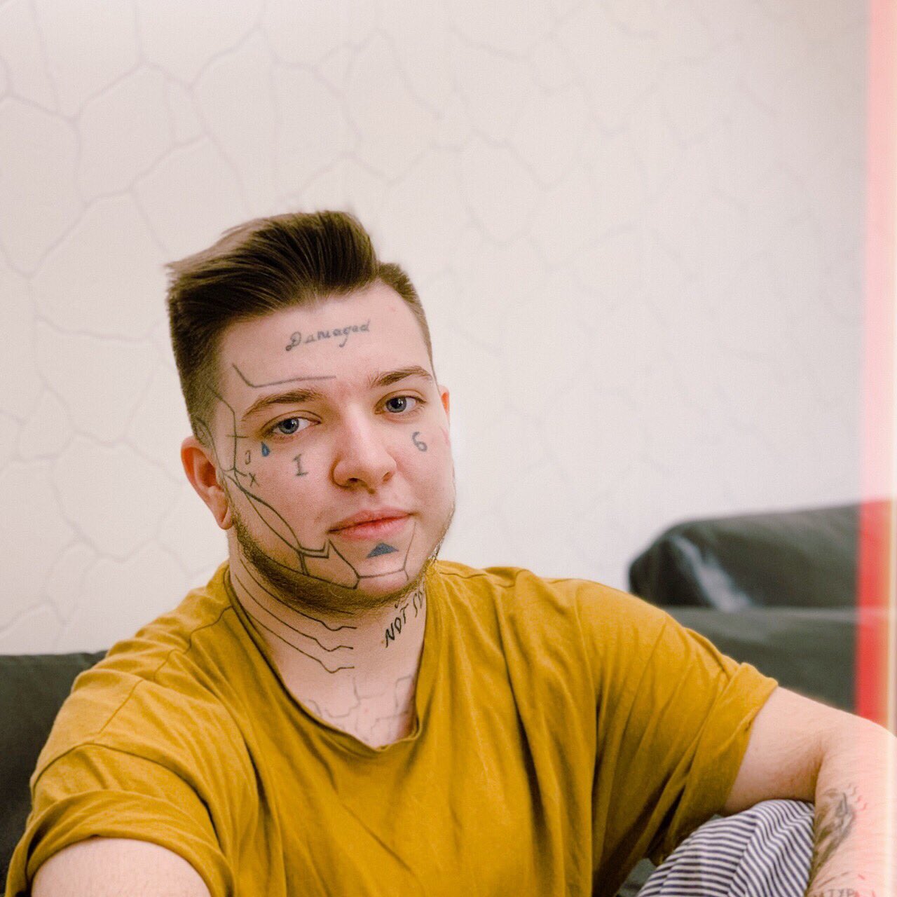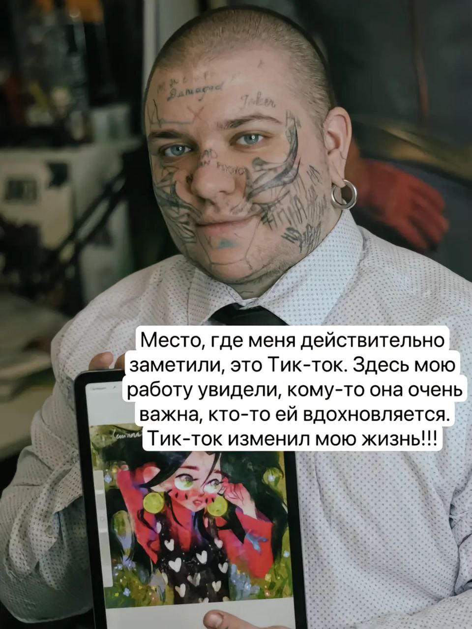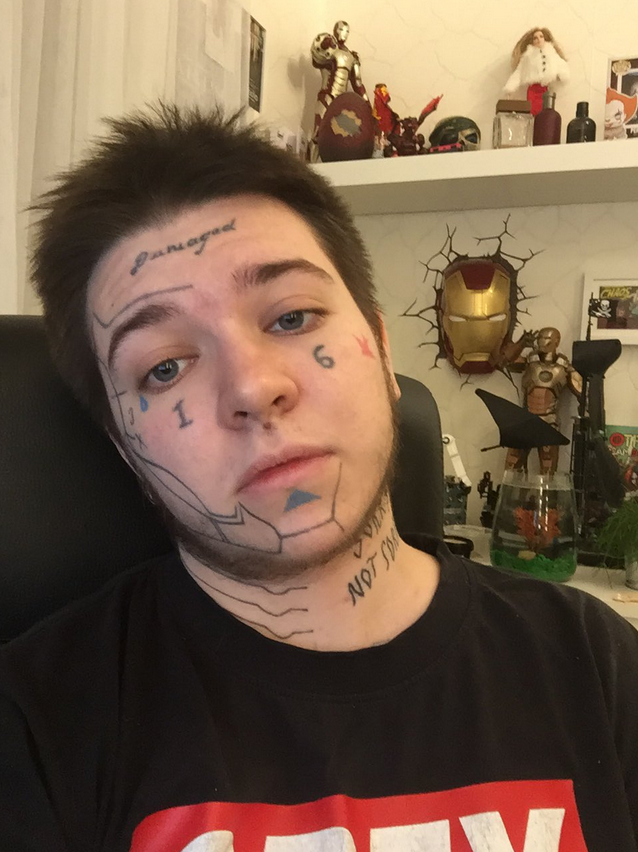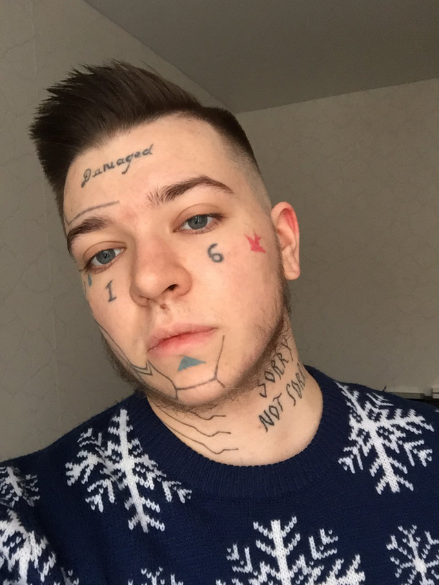 >>1788362 Ё-моё, как можно одновременно рисовать милые картинки и при этом превратить свое ебло в стену общественного туалета максимально уродливыми татухами