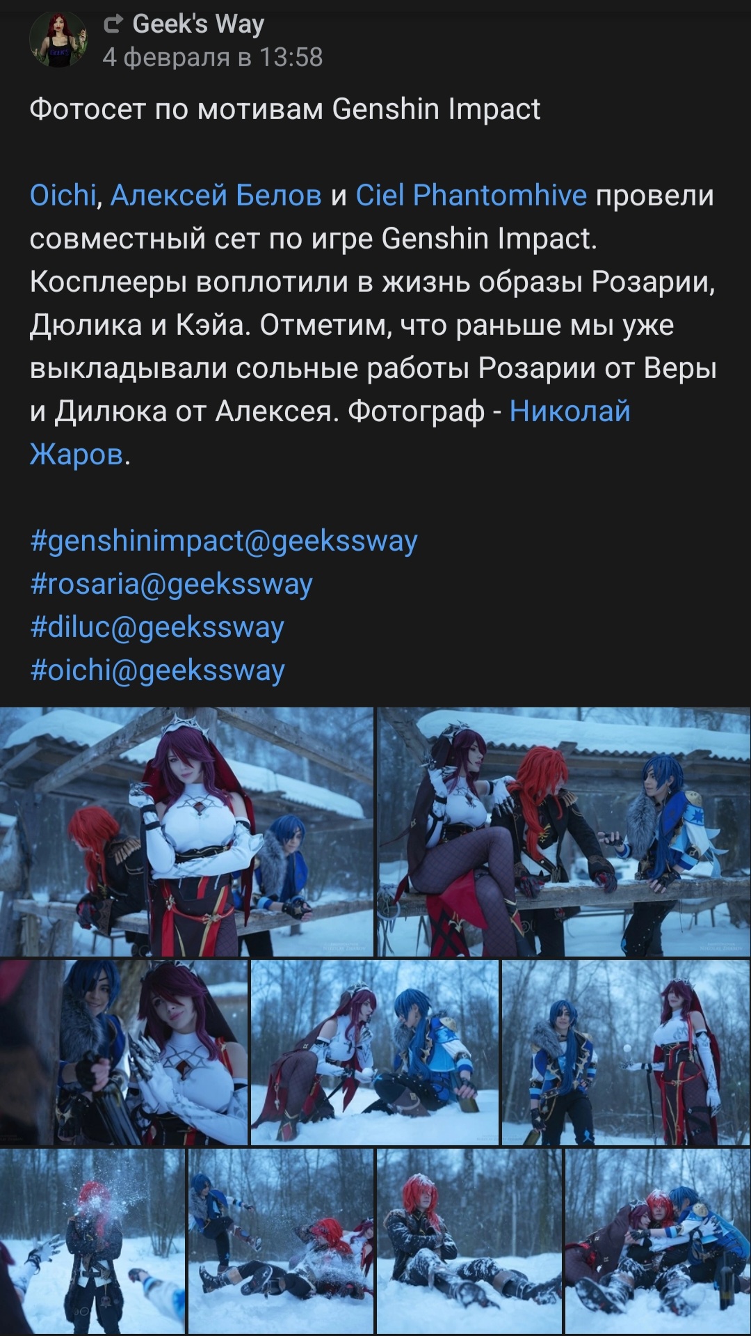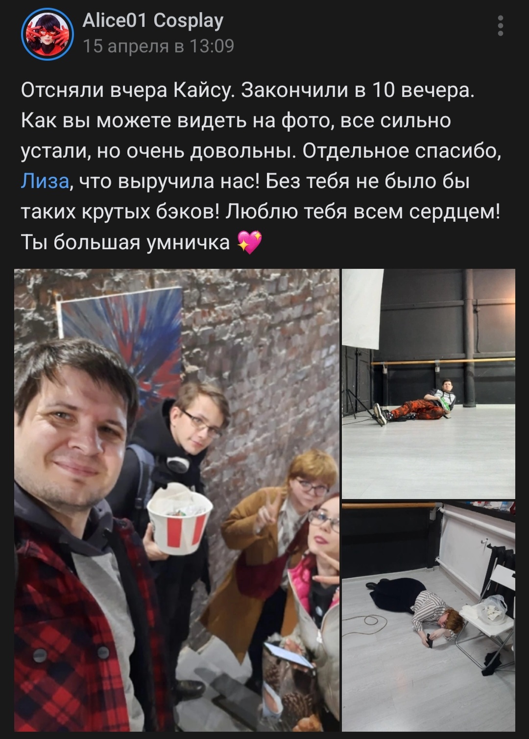 3) на стеночке ещё куча хер пойми кого. Какие-то Лисай, Никиты, хуй разберёшься. Но мне интересен вот этот кадр. Лиза/Саня/Саша. Полурак-полухуй одним словом, называют её везде по-разному. Она нахуй кто? Кучу лет в этой мастерской, косплеев в вк и инсте нет. Соцсеточки у неё полудохлые нахуй, но забавные высеры встречаются. Часто вижу это ебало в сторис богинечки. То они тусуются где-то, то на съёмках эта девка бегает на бэках, в группе мастерской она там блять и кусры и хуюрсы вела, но КТО ТЫ БЛЯТЬ АЛЛО?! ЕБАТЬ ТЕБЯ ХОЧУ! КУДА ТЕБЯ ЕБАТЬ? КУДА ТЕБЯ ЕБАТЬ? СКАЖИ ХОТЬ СЛОВО, Я ПОЙМУ КУДА!!! Это новая богинечка? Это контент, за который я хочу заплатить шекелей? Я не понимаю нахуй базаоперкуна