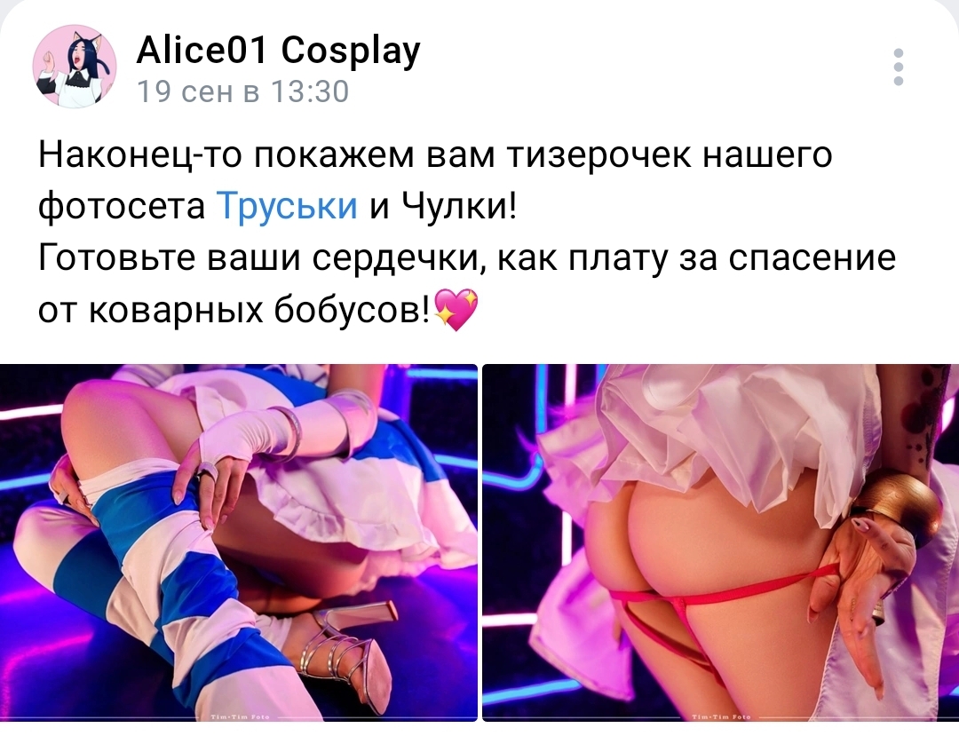 Тред посвящается лучшей девочке в фандоме, каждый день думаю только о ней. В отличии от оверхайп шаболд на этой доске, Алисочка самая нежная, красивая без всяких ваших фотошопов, всегда мило общается в комментариях. Анончики, давайте вместе восхищаться моей богинечкой и прививать себе хороший вкус в косплее. Богинечка продолжает победное шествие по головам эрокосплейшиц доске, под дружное одобрение алисолайферов. ВК https://vk.com/alice01cosplay (сосредоточение мудрости богини) Тикток https://www.tiktok.com/@alice01_cosplay (сосредоточение кринжа куража богини) Телегрум https://t.me/alice01cosplay (сосредоточение великой воли богини) Бустич https://boosty.to/alice01cosplay (подношения богине) ебаный хейтер в треде запрещено: Оскорбление богини в любом виде использование читов, распрыжек, скриптов и прочих хитростей использование спреев-обманок и спреев с эротическим содержанием использование уязвимостей карт мат в любом проявлении слово "сука" хоть и литературное, но в треде расценивается как мат оскорбления почитателей богини использование нечитаемых ников, ников содежащие мат, цифровых ников всё это карается баном