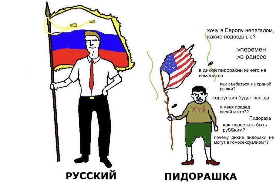 >>1707850 > "чтобы не быть отправленными либо в тюрьму, либо на фронт Ну да. Действительно, ведь если их убьют, или поймают эти прогрессивные, демократические, хорошие, добрые украинские солдаты, то им охуеть как влетит ещё и за нетрадиционную ориентацию. Видел издёвки со-стороны их военных в сторону погибшего российского солдата, при котором были фотки со-своим любовником. Это даже двоемыслием сложно назвать. Готовы толкать любую хуйню, которая как бы считается "правильной". Даже если эта хуйня против всего за что они вроде как борются. Геббельс охуевает и чувствует себя полнейшим лохом.