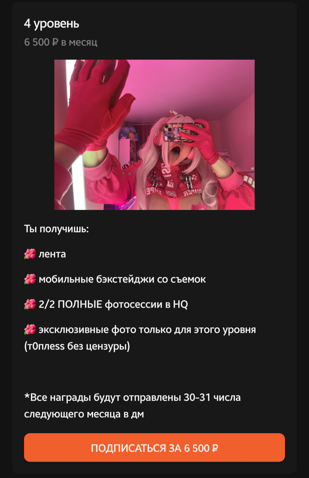 Хочу взять подписку на месяц на ее бусти, и забрать два месячных фотосета со всеми плюшками. А цена.. ну вы сами понимаете..