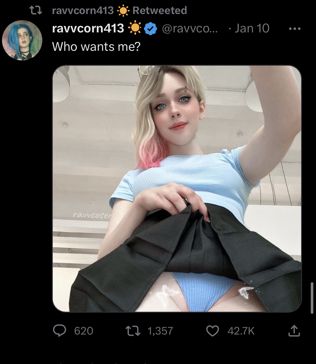 Ravvcoser/ ravvcorn Очередная тупая пизда которая нашла свой способ заработать денег, Юзает накрутку, сливов мало, потому что сука чистит и ничего стоящего не продает. Но целенаправленно идет в порно индустрию. Психически не здорова, бывшая спортсменка комсомолка, тик токер, сейчас увы кусок жира. И кстати сидит на дваче и не может адекватно реагировать на критику, так что в злобе поднимает свой тред. Комплексует по поводу сисек и внешности, в видео и на фото разница охуевшая. Косплеит чтобы доказать всем свою охуенность, но не понимает как жалко это выглядит со стороны.
