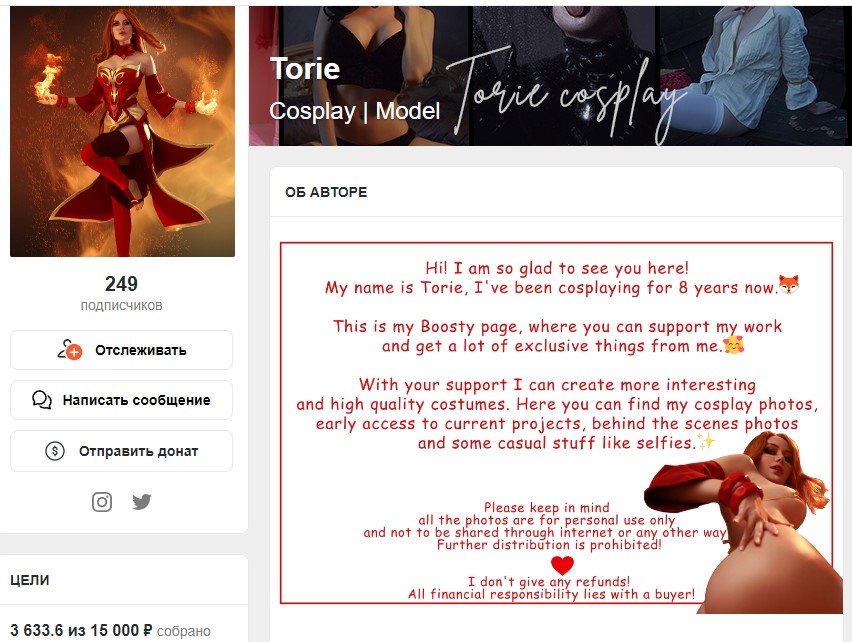 Доброго дня уважаемые аноны. Давеча мне попалась на глаза косплеерша Vick_Torie она же Виктория Кот. Ранее я уже наблюдал ее работы еще в 2019 и 2021 годах во всяких профильных игровых изданиях вроде какой-нибудь Игромании. С виду ничего особенного, типичные набор персонажей из Ведьмака, LoL, DC и.т.д, если бы не одно НО. Буквально недавно Викуся ни с того ни с сего решила оголится, хотя раньше по моим наблюдениям потолок ее обнаженки была Йеннифэр в труханах и лифаке. В связи с этим поворотным для ее биографии событием предлагаю обсудить данную особу, поделится нюдсами и прочими любопытными фактами.