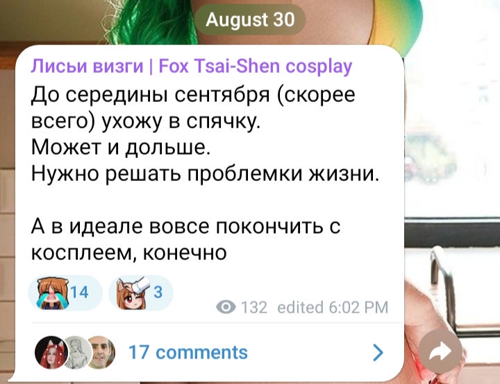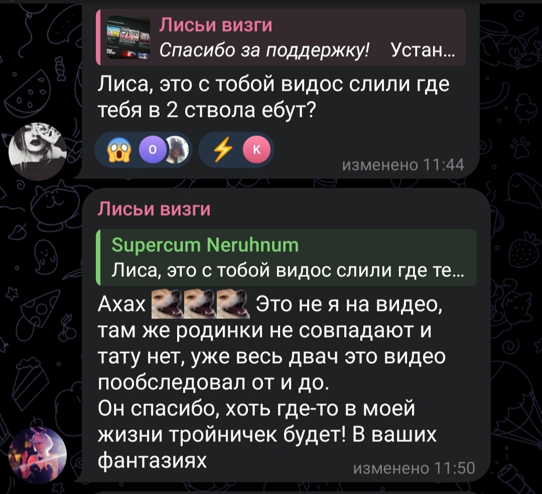 Ахах. https://t.me/foxygencosplay/5371 Хорошо отработали, бомбалейло достигло критического уровня, проткнутый зад подгорел. Вынуждена была запросить помощь у друзящек.