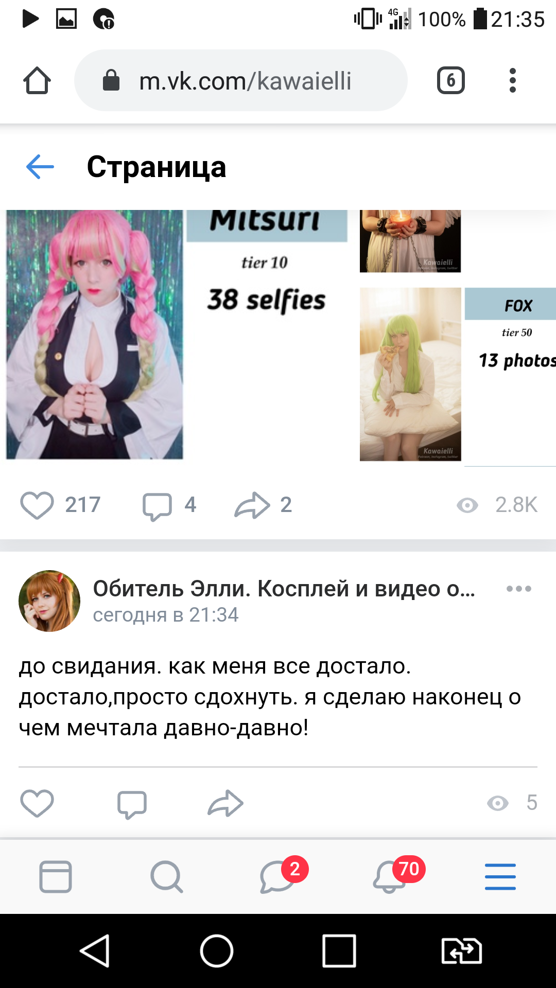 Наконец несколько конкуренток понимают, кто им гадит, и они задумывают страшную месть ГГ приезжает на большой фестиваль ((Игромир) в косплее. Ее соперницы втроем подходят к ней, заводят разговор свысока, потом переходят к прямым унижениям, типа и сама ты страшная, и косплей у тебя говно, и подписчиков потеряла. Ответить она им не может, потому что нечем - те красивые и успешные. Плачет в туалете, едет домой.