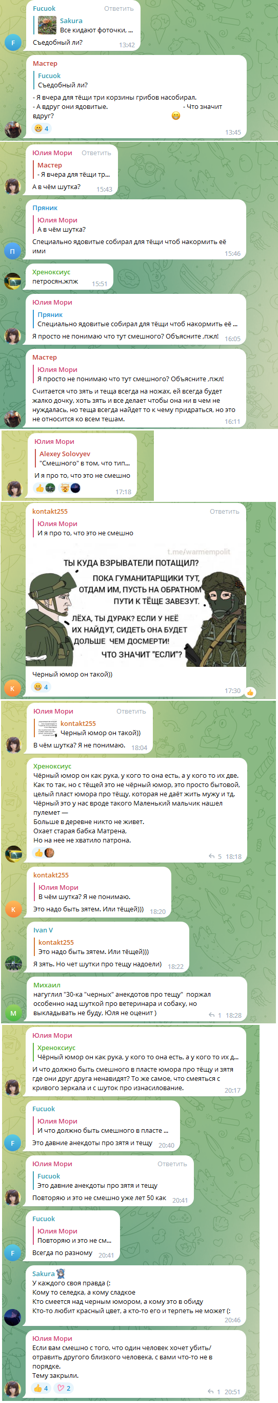 >>1760877 Это из-за Загорульки всё. Когда Юля одна то она не сдерживает себя в общении со зрителями и кривляется намного смешнее.