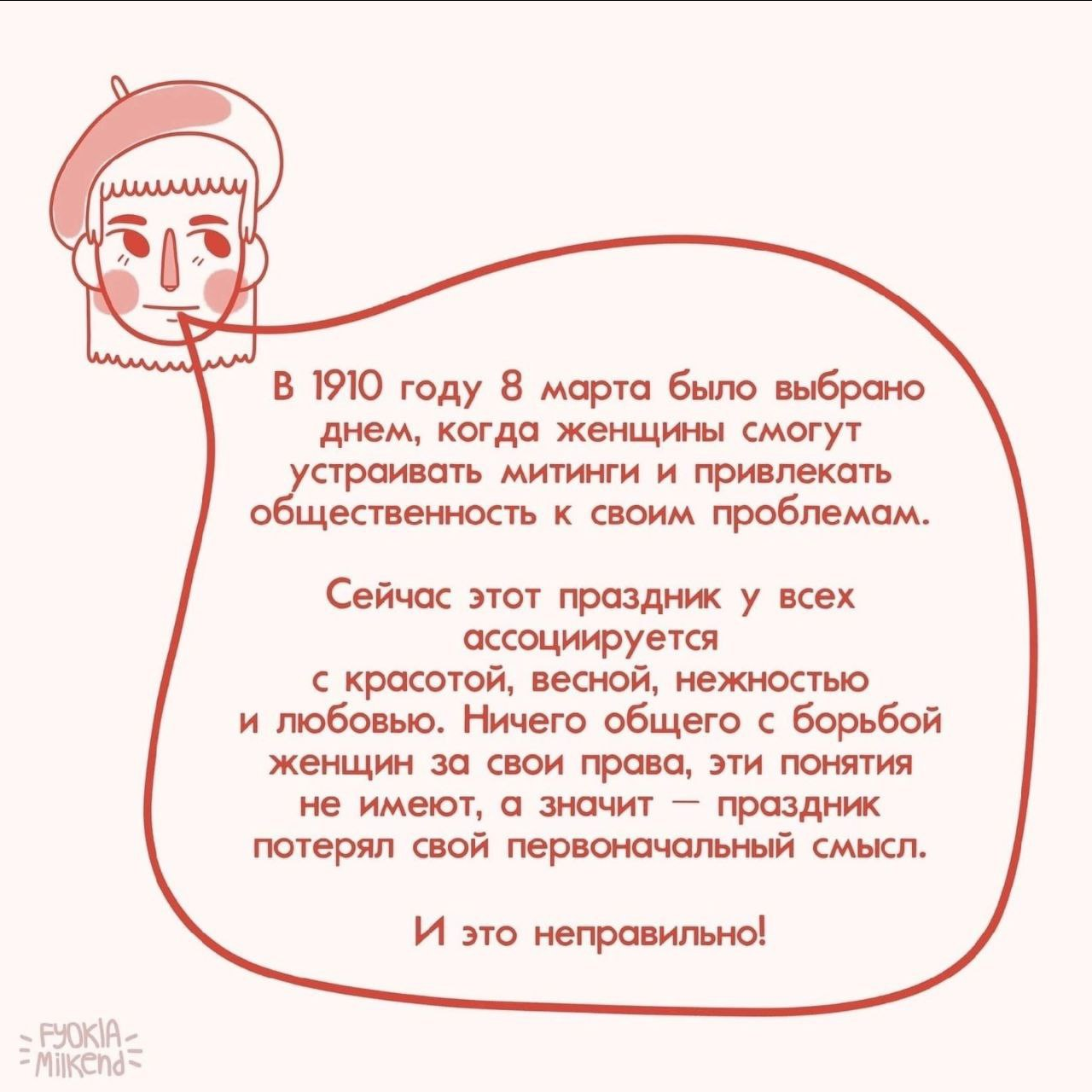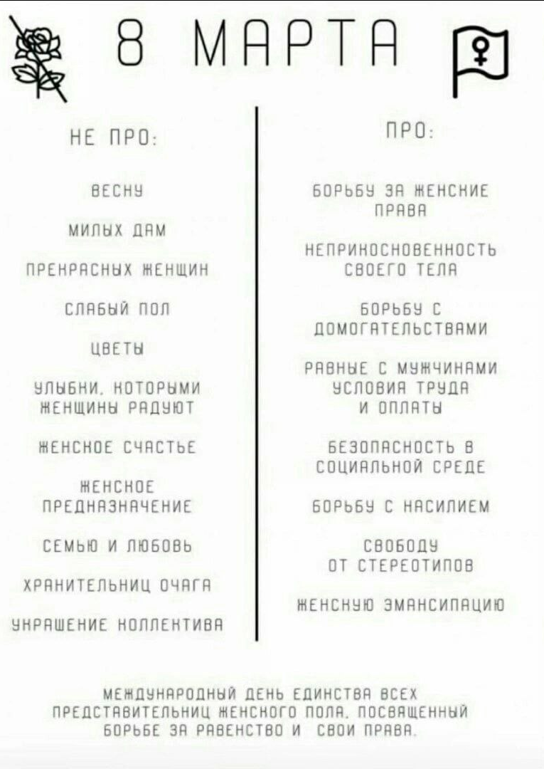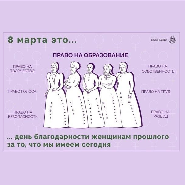 Спасибо Вам и женщинам прошлого (и нынешнего) благодаря которым мы можем не бояться ездить на велосипеде, носить брюки, ездить в другие города; у нас есть своя собственность, мы открываем счета в банках, получаем высшее образование, права на вождение транспорта, всё более высокие должности в силу своих заслуг и умений!💥