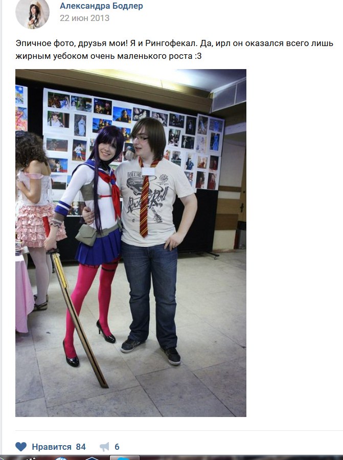 Эта пизда заблокировала меня в группе в вк, потому что я знаю её ирл с доисторических времен. Сашка себя изуродовала, смешалась с массой бимбоблядей, растеряла весь изюм и уникальность. Прощай, Бодлерша, больше не буду ностальгировать по временам, когда ты весело проводила время на театралке с кардиналом и другими подружайками. Очень дико осознавать, что она росла и скатывалась буквально на моих глазах. У местного фотографа Дмитрия Верещагина есть куча фоток с тех сходок, где Бодлер ещё свежая и моложавая. Высрал кучу, короче.