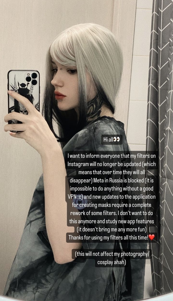 Лол, этот человек не просто обрабатывает фотографии, а буквально рисует поверх заново. Видел ее в жизни, там пмздец. Страшная, так еще и чсв. Любит подлизов. Тупая и банально не знает элементарных вещей. Год назад был какой то скандал, где она полностью спиздила фотографию чужого косплеера и повторила точь в точь с обработкой, вплоть до расположения всяких штук. А когда это спалили и начался скандал - включила дуру и не понимала за что ее хейтят. Насчет почему не любит ксенон - года полтора назад аку попросил в инсте написать ему косплееров, с которыми можно было бы по сотрудничать. Там всплыла она. Аку ответил у себя в историях, что она не косплеер, а так, блогер и не более того. Ее с этого разбомбило. С тах пор поносит ксенон и аку, считает себя выше и круче них