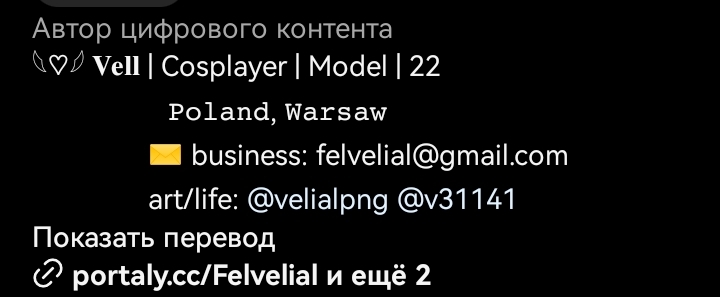 Вел охуенная, лучший косплеер и с фш и без, я бы женился с радостью и покупал все что захочет, но я рад что она встретила парня и любит я вообще ебал мне нравится вайб и мило и готично и в меру секси, но даже если куплю подписку снова у нее сливать не буду ну нахуй таким долбаебам как выше халяву давать Надо быть имбецилом блять чтоб завидовать инвалиду и мешать девочке встать на ноги, ну простите но это совсем пиздец