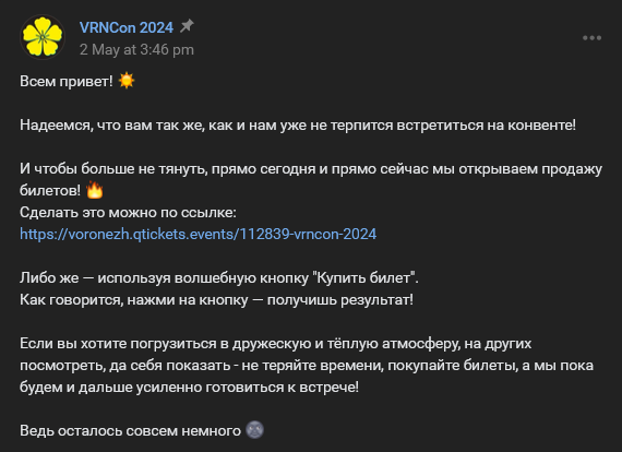>>1771671 Это их бюджет и их риски - дорогущий зал, который даже на врнфест не выкупался весь, нестабильный рубль, который пока держится на силе воли Наебуллиной, вероятность прилета каких-нибудь дронов и/или а-ля Крокуса с последующим запретом мероприятий или переносом (при котором немалый процент купивших билет их возрващает)... Ну честно, даже сабж регулярно прикидывал хвост к носу, чтобы не пролететь по баблу. Вперед, отлично, посмотрим.